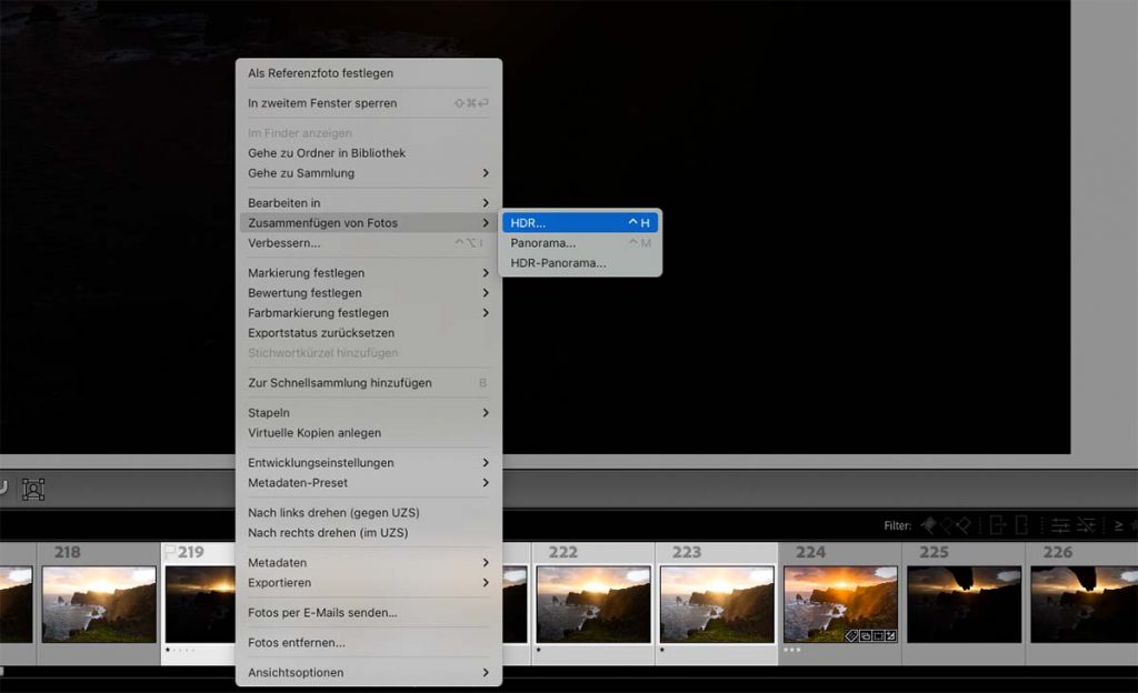 Nachdem du deine Belichtungsreihe aufgenommen hast, folgt der entscheidende Schritt: das Zusammenfügen der Einzelbilder zu einer einzigen Datei mit erweitertem Dynamikumfang. Lightroom bietet dafür eine sehr zuverlässige HDR-Funktion, die natürliche Ergebnisse erzeugt, ohne dass der typische künstliche HDR-Look entsteht, wie man ihn aus älteren Programmen kennt.