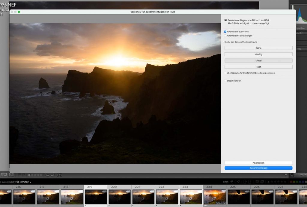 Hinzu kommt, dass moderne Software (vor allem Lightroom und KI-basierte Tools) extrem gut darin geworden ist, Belichtungsreihen sauber zusammenzuführen. Wo man früher mühsam manuell maskieren musste, entsteht heute in Sekunden ein harmonisches, natürlich wirkendes Ergebnis.