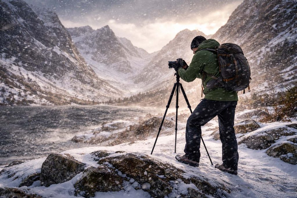 Am Ende gilt die einfache Regel: Wenn du im Winter fotografierst, plane deine Kleidung immer etwas wärmer als nötig. Während man beim Wandern schnell wieder warm wird, steht man beim Fotografieren oft über längere Zeit still. Eine durchdachte Kombination aus Thermounterwäsche, isolierenden Schichten und einer warmen Jacke sorgt dafür, dass man sich vollständig auf das Motiv konzentrieren kann, statt ständig an kalte Hände oder Füße zu denken.
