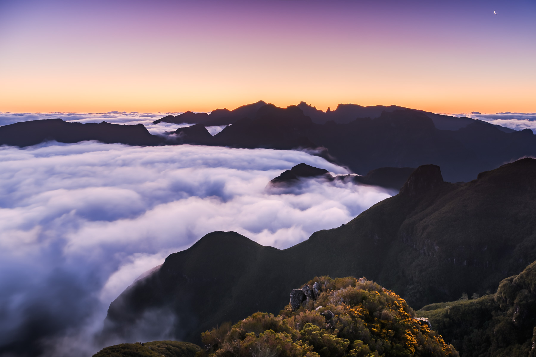 Im Zentrum Madeiras ragen die Gipfel des Pico Ruivo und des Pico do Arieiro aus einem Meer aus Wolken empor. Es ist ein Ort, an dem Himmel und Erde eins werden, wo man über die Wolken steigt und das Licht in allen Farben des Morgens erstrahlt.