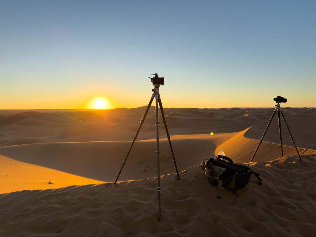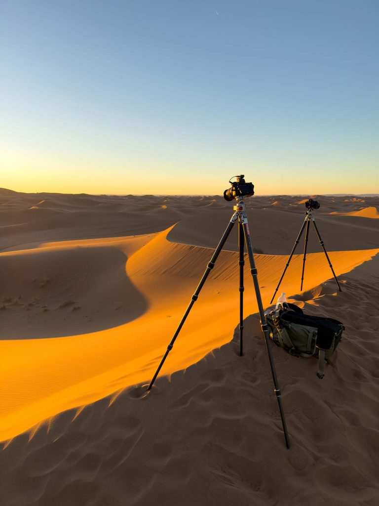Auch wenn ich nicht alle Locations öffentlich teile, gab es während der Scoutingreise mehrere besondere Momente. Einer davon war zweifellos die Erg Chigaga. Wer zum ersten Mal dort steht, versteht sofort, warum so viele davon träumen, in der Wüste fotografieren zu dürfen. Es ist nicht nur die Größe der Dünen, die beeindruckt. Es ist auch das Licht.